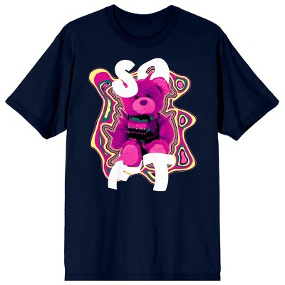 Teddy Drip Groovy Vibes Pink Bear Men's Navy Blue Short Sleeve Crew Neck Tee