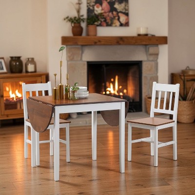 MAYEERTY 3-Piece Drop Leaf Dining Set, Table & 2 Upholstered Chairs