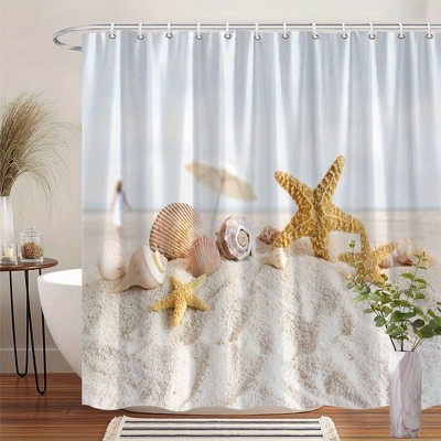 Lomsoe 1PC Beach Starfish And Shell Patterns Shower Curtain, Polyester Fabric Suit For Bathroom Decor.