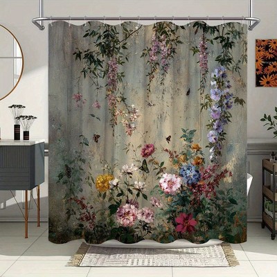 Lomsoe 1PC Blooming Garden Painting Shower Curtain, Bathroom Decor, Machine Washable, Shower Curtain for Bathrooms.