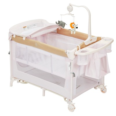 Pack and Play with Bassinet Baby Playpen Foldable Playard with Changing Table Portable 4 in 1 Baby Playard