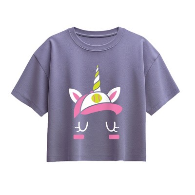 Girls' - Instant Message - Unicorn Softball Face Short Sleeve Boxy Graphic T-Shirt