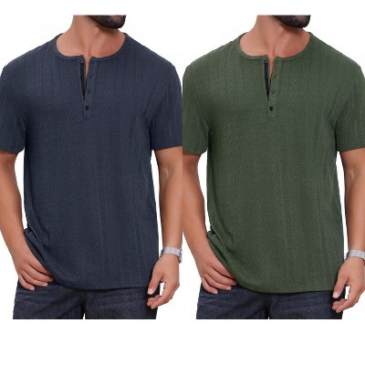 INSPIRE CHIC Men's Henley Short Sleeve Jacquard Texture Knitted T-Shirts 2 Packs