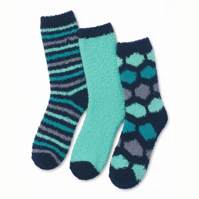 Tipi Toe Women's 3-Pairs Soft Fuzzy Solid Geometric Stripe Pattern Cozy Anti-Skid Crew Comfy Socks