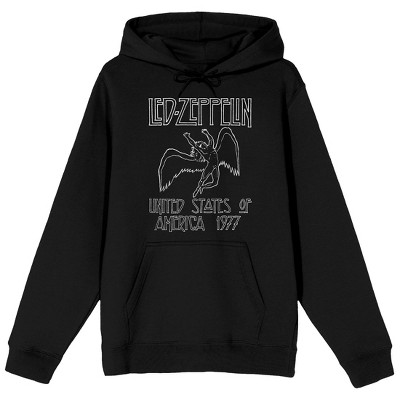 Led Zeppelin United States Of America 1977 Adult Black Long Sleeve Hooded Sweatshirt