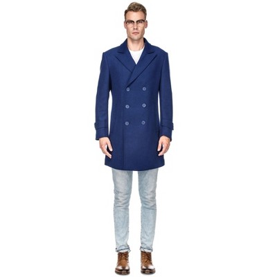 Men's Double Breasted Pea Coat Wool Blend Dress Jacket Peacoat