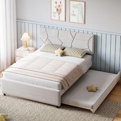 - beige upholstered bed