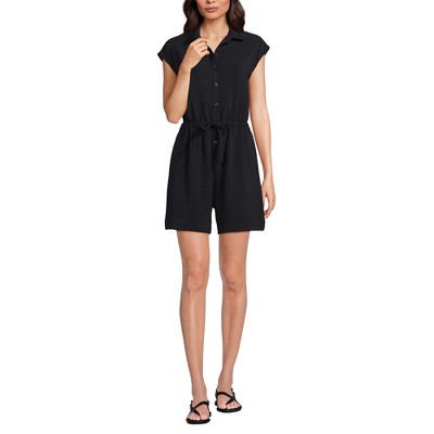 Lands' End Women's Cap Sleeve Creaseless Button-Down Romper