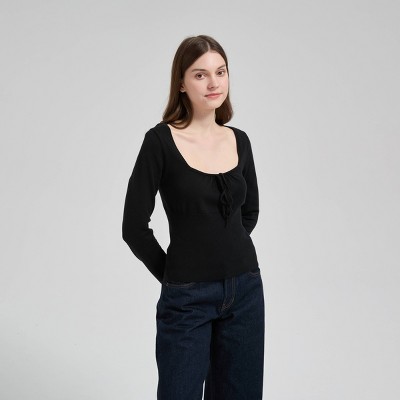 - womens long sleeve ribbed v neck