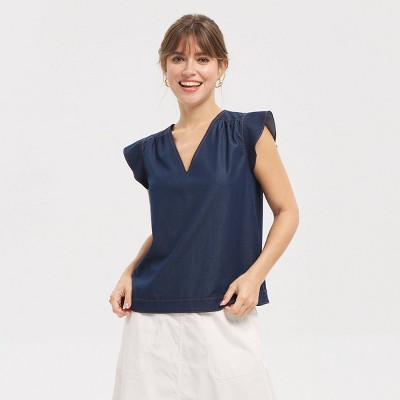 - womens button short sleeve v neck
