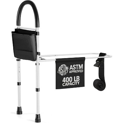 Bed Assist Rail - Black and White Bed Rails for Seniors with Adjustable Heights, Storage Pocket with Hand Assistant Bar - MedicalKingUsa