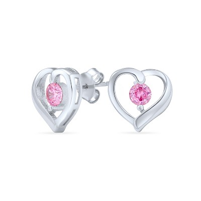 Bling Jewelry Pink Solitaire Cubic Zirconia Open Heart Stud Earrings .925 Sterling Silver