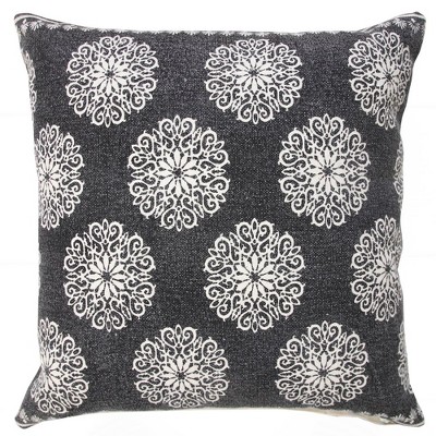 LR Home Ox Bay Hand-Woven Black/White Floral/Botanical All-Natural Cotton Pillow Cover