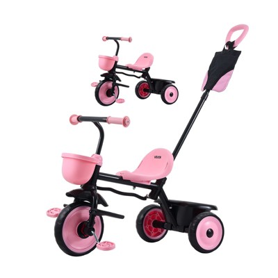 VEVOR Toddler Tricycle & Stroller for 18 Months to 5 Year Old, Kids Trike with Parent Push Handle, Adjustable Seat & Storage for Outdoor Play, Pink
