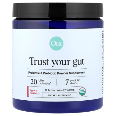 Ora Trust Your Gut, Probiotic & Prebiotic Powder Supplement, Organic Apple & Raspberry , 7.97 oz (226 g)