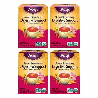 Yogi Sweet Strawberry Digestive Support Herbal Tea- Caffeine-Free, Vegan Friendly, Kosher, USDA Certified Organic, Non-GMO, 16 Tea Bags (Pack of 6)
