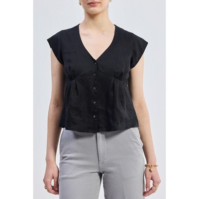 Ellos V-Neck Flounce Hem Blouson Sleeve Blouse