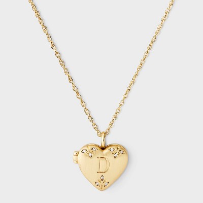Brass Letter "D" Heart Locket with Initial Pendant Necklace - A New Day™ Gold