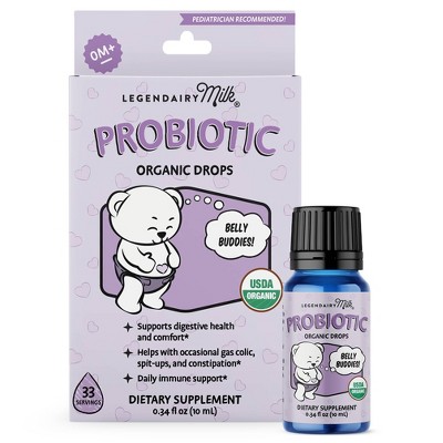 Legendairy Milk Organic Baby Probiotic Drops, Digestive Support for Infants - 0.34 fl oz: 2 Billion CFU, 1 Pack, Liquid Form