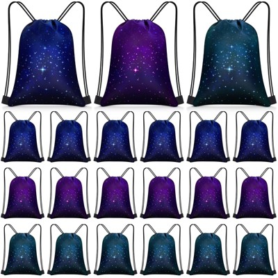 Narwey 24 Pcs Starry Sky Drawstring Bags Set Bulk 12 x 10 Inch Waterproof Beach Bags