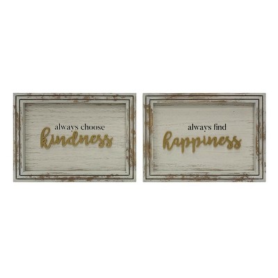 Transpac Distressed White Gold MDF Sign Set of 2 Home Decorations Spring Wall Art