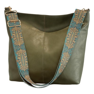 Narwey Hobo Crossbody Bag Vegan PU Leather Wide Guitar Strap Purses Stylish Boho Shoulder Tote Bucket Bag