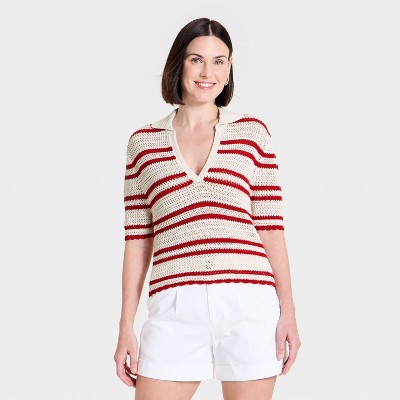 Women's Short Sleeve Polo Pullover Sweater Top - A New Day™