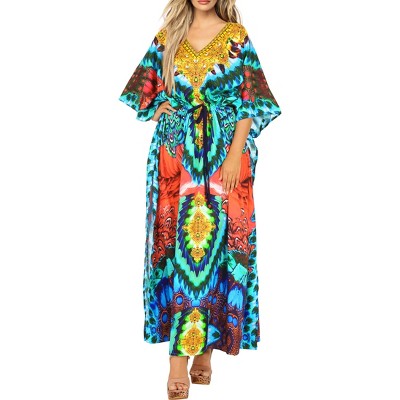 LA LEELA Womens Maxi Slit Dashiki Casual Caftan One Size Fire Geometric