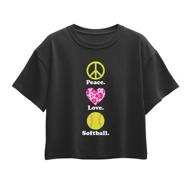 Girls' - Instant Message - Peace, Love, Softball Short Sleeve Boxy Graphic T-Shirt
