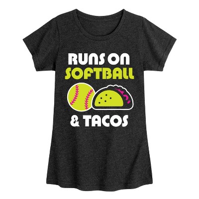 Girls' - Instant Message - Runs On Softball And Tacos Fitted Short Sleeve Graphic T-Shirt