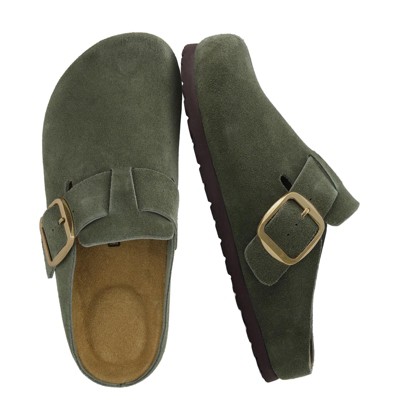 CUSHIONAIRE Rusty Genuine Leather Clogs for Women, Comfortable Slip On Womens Shoes with Adjustable Buckle and Soft Memory Foam