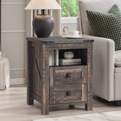 Black 2-Tier Farmhouse Side Table | Rustic Wood Square End Table with Storage Shelf for Living Room Tea Time