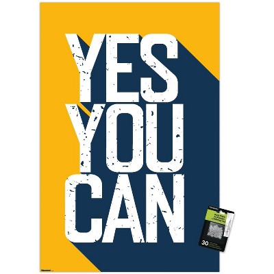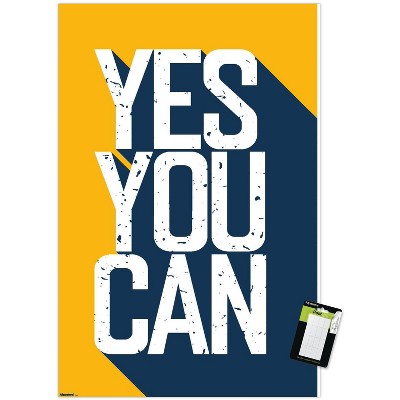 Trends International Motivational Quote - Yes You Can Yellow, White, Blue Unframed Wall Poster Prints