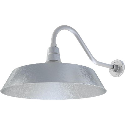 17in. Galvanized Outdoor Gooseneck Barn Light Fixture with Long Extension Arm - Wall Sconce Farmhouse 9W 900lm A19 LED Bulb (5000K Cool White)
