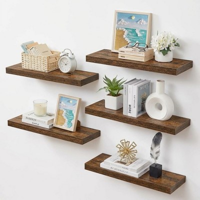 5 Pcs Rustic Brown Floating Wall Shelves, Living Room Kitchen Photo Display Hanging Shelves, Display Shelves for Picture Frames, Wall Decor