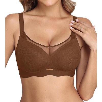 Avidlove Bras for Women V Neck Wireless Bra Lifting Mesh Bra Brown L
