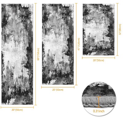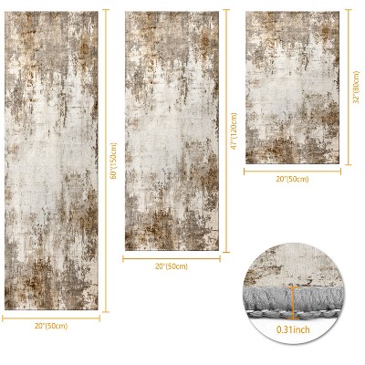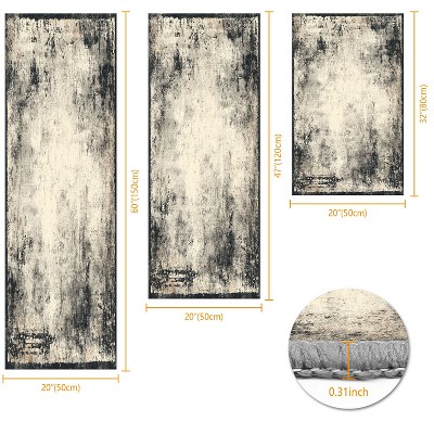 Three-Piece Kitchen Rug Set Non-Slip Washable Abstract Pattern Soft Comfort Mat for Sink Floor Entryway Hallway Bathroom