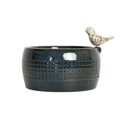 Perched Bird with Light Blue Porcelain Water Fountain 7.48" x 8.86"