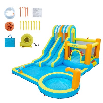 GustoWave Hexagonal Inflatable Water Park For Kids, With Pool, Double Slides, And Bounce Area