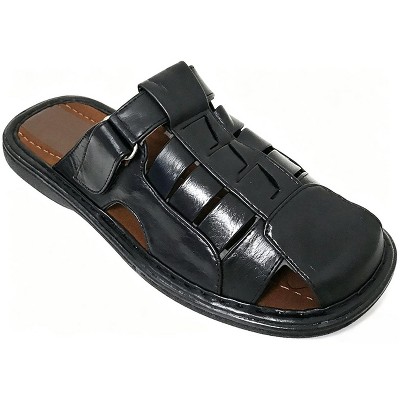 Mens Slides Sandals Black Closed Toe Hook and Loop Fisherman Slipper