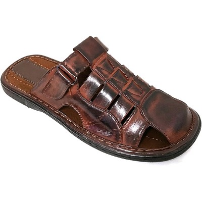 Mens Slides Sandals Brown Closed Toe Hook and Loop Fisherman Slipper