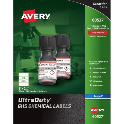 Avery UltraDuty GHS Chemical Labels for Pigment Inkjet Printers, Waterproof, UV Resistant, 1x 2.5, Pack of 600 (60527)