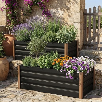 2-Tier Raised Garden Bed Planter Box, 8 Drainage Holes, 220 lbs Capacity, for Vegetables, Flowers