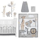 Lambs & Ivy Baby Jungle Animals White/Gray/Taupe Cotton Fitted Crib Sheet