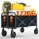 Swtroom Collapsible Black Folding Camp Wagon with Wheels for Shopping Camping Beach