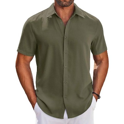 Coolmee Men's Casual Button Down Shirts Short Sleeve Textured Beach Shirt with Pocket