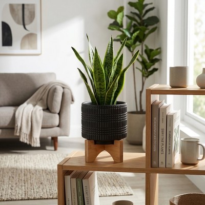 Geared Ceramic Indoor Outdoor Planter Pot Charcoal - Threshold™