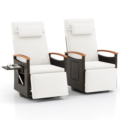 - white wicker chaise lounges