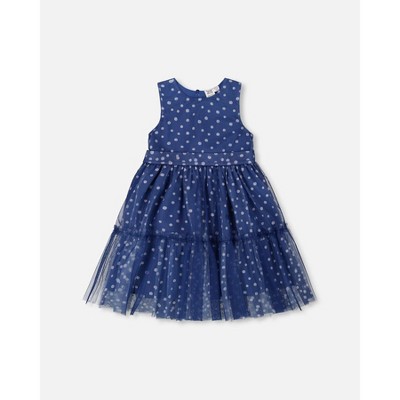 Deux par Deux Girl Printed Tiered Dress Blue with Daisy Print