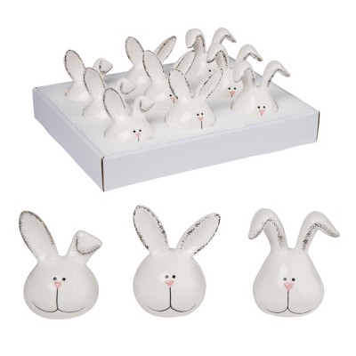 Transpac Dolomite 4.5 in White Easter Bunny Heads Display Set of 9 Decorative Objects for Easter Decor
